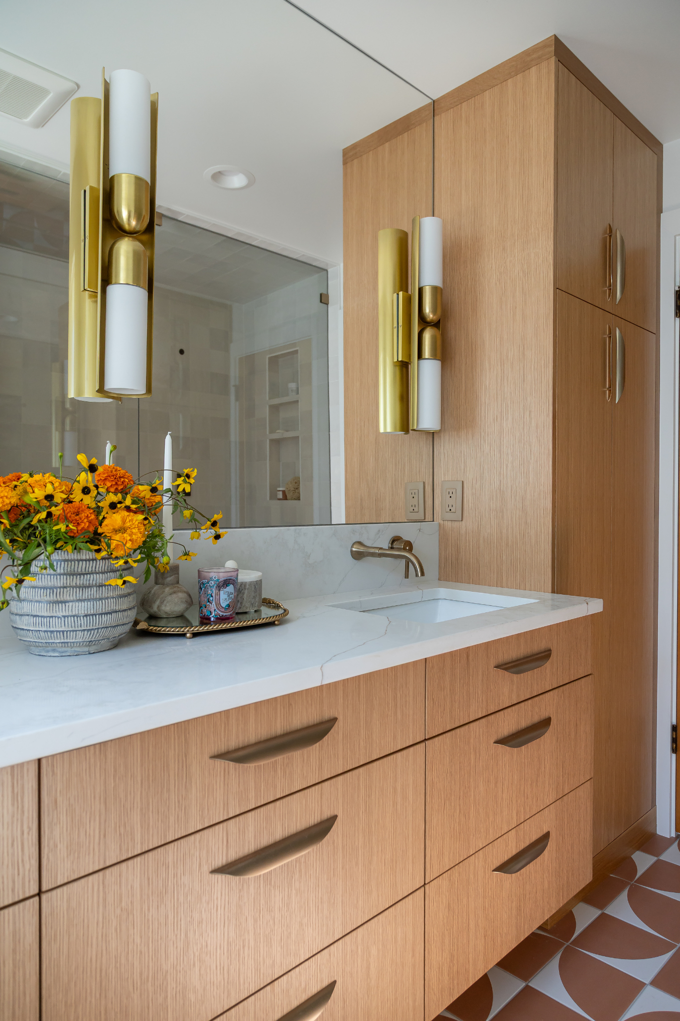The remodel included a full renovation of the kitchen and primary bathroom, along with thoughtful updates throughout the home. The goal was to create a spa‑like retreat in the bathroom, a highly functional and visually elevated kitchen, and a bedroom that serves as a true sanctuary. Natural materials, increased daylight, and improved sightlines were intentionally incorporated to support biophilic design principles and create a calming, wellness‑oriented atmosphere.