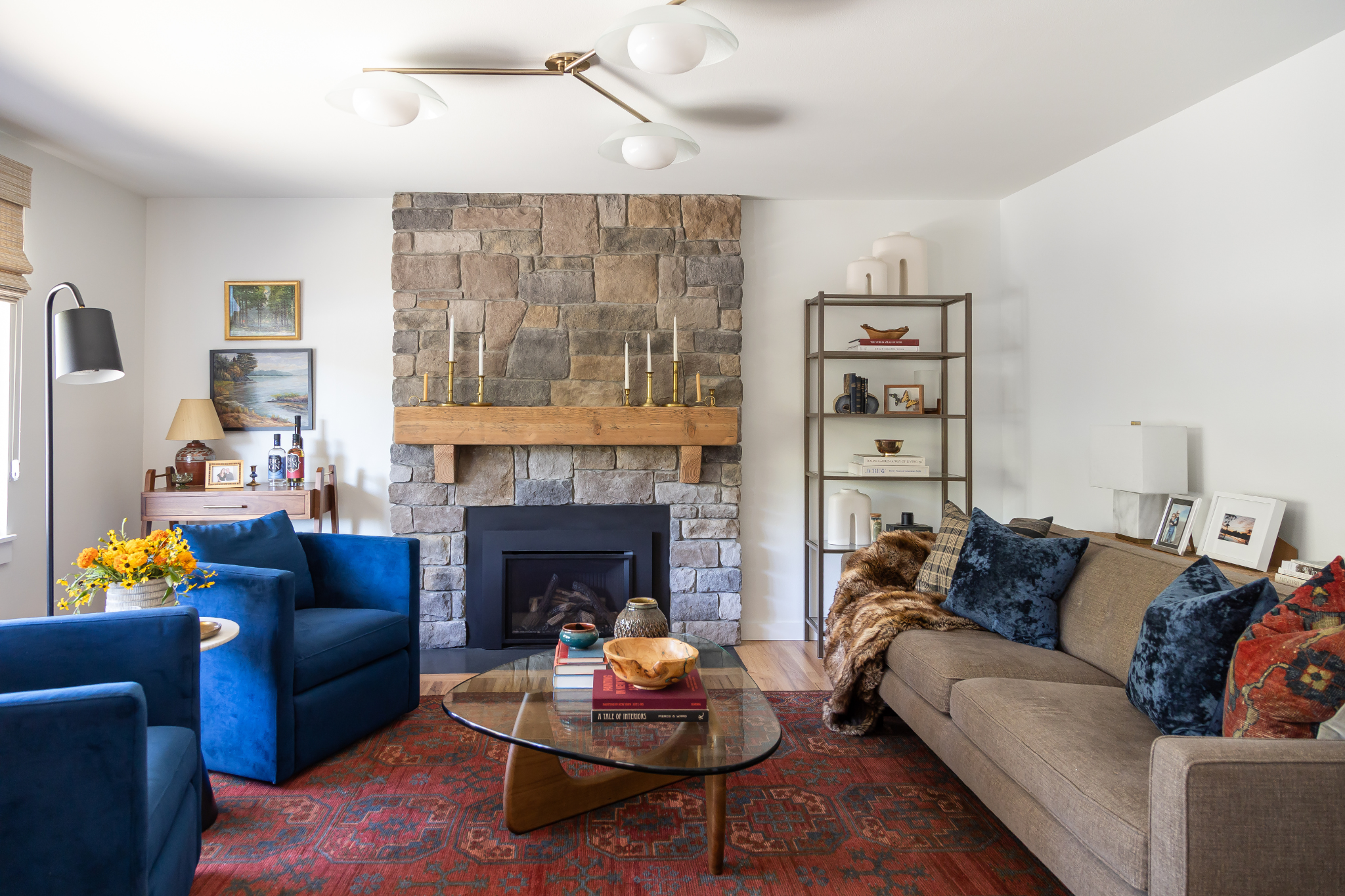 Several aspects of the project required creative problem‑solving. The living room fireplace had no formal layout drawings, so the mason and designer collaborated closely, laying out each stone on the floor to achieve a balanced, organic composition. The enlarged kitchen window introduced structural challenges due to new point loads and an existing basement remodel below. Because a window sat directly beneath the new opening, the header needed upgrading. Instead of installing it in the basement—where it would disrupt finished spaces—we engineered a solution that placed the header on the kitchen’s sill plate, meeting structural requirements while minimizing impact.