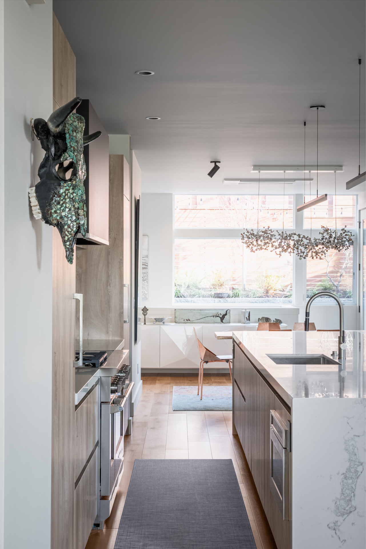 Faced with the need to rebuild, the homeowners saw an opportunity to reimagine the space to reflect their exacting tastes. We collaborated closely with them and a designer we introduced, ensuring the renovation met their vision for both aesthetics and functionality. Sustainability was a priority throughout the project. The clients selected German cabinetry that surpasses American environmental standards, and all wood flooring is FSC-certified.