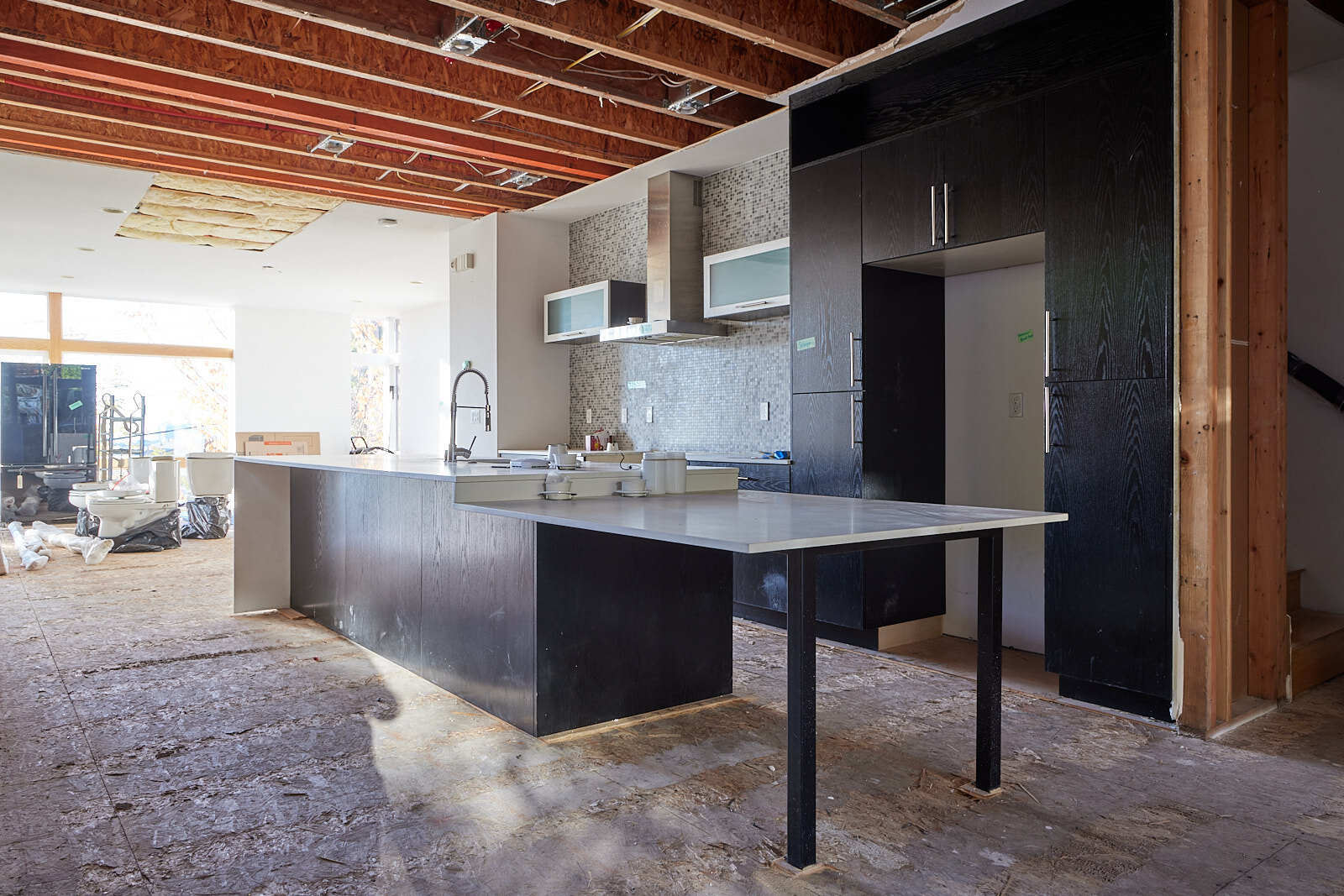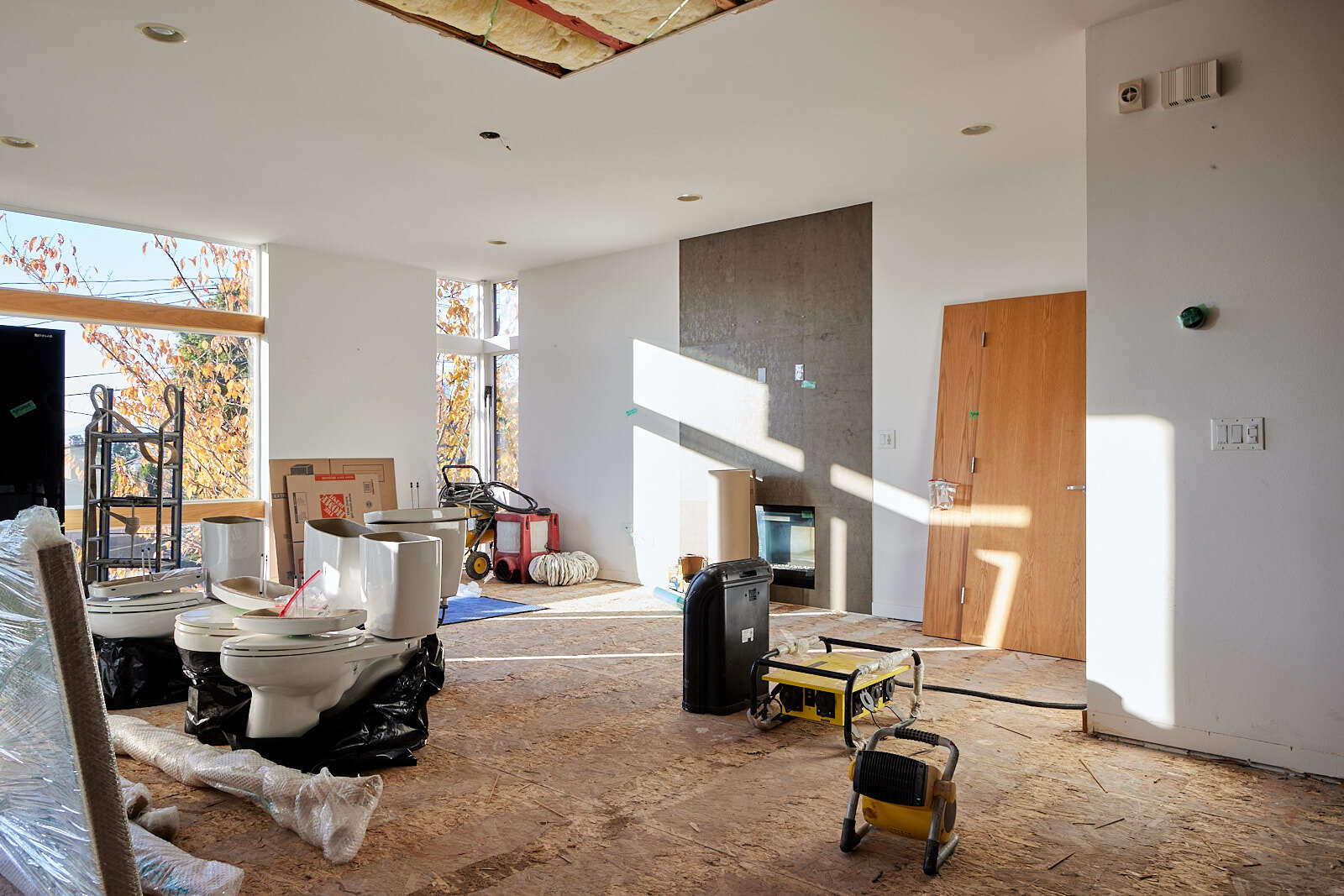 After living in their beautifully remodeled Seattle home for seven years, these homeowners experienced a devastating flood caused by a burst supply line to the second-floor laundry sink. Water flowed undetected for hours, saturating flooring and walls on both the first and second levels, and even reaching the garage and basement. The damage was extensive—requiring full replacement of electrical systems, flooring, tile, and cabinetry in the kitchen and all three bathrooms. One of the greatest challenges during restoration was removing the subfloor, which had been glued to the TJI floor joists.